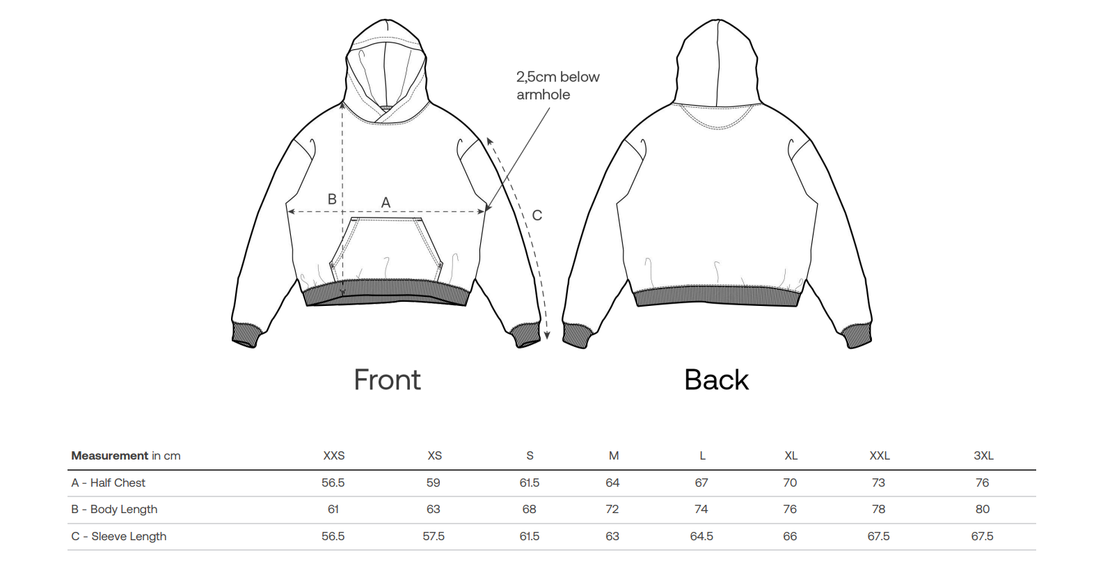 Velikosti jsou v tabulce níže, klikněte pro zvětšení.