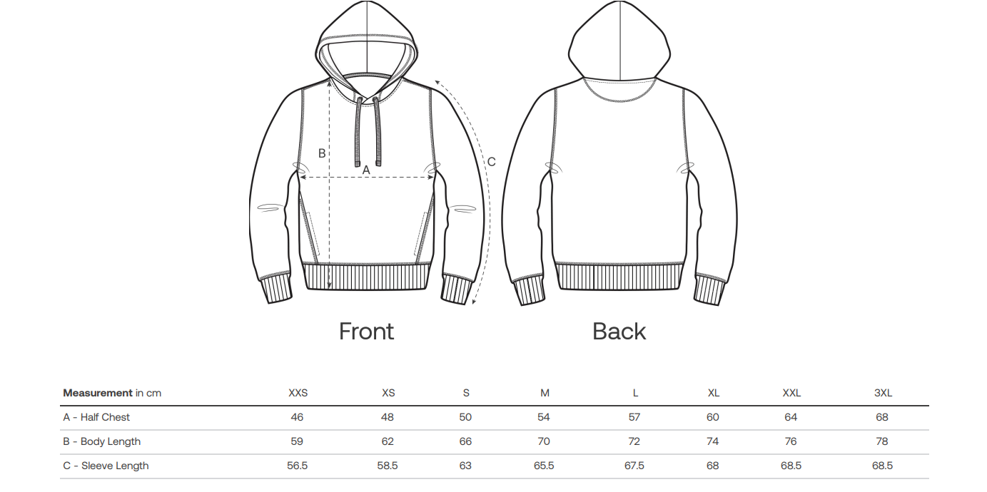Velikosti jsou v tabulce níže, klikněte pro zvětšení.