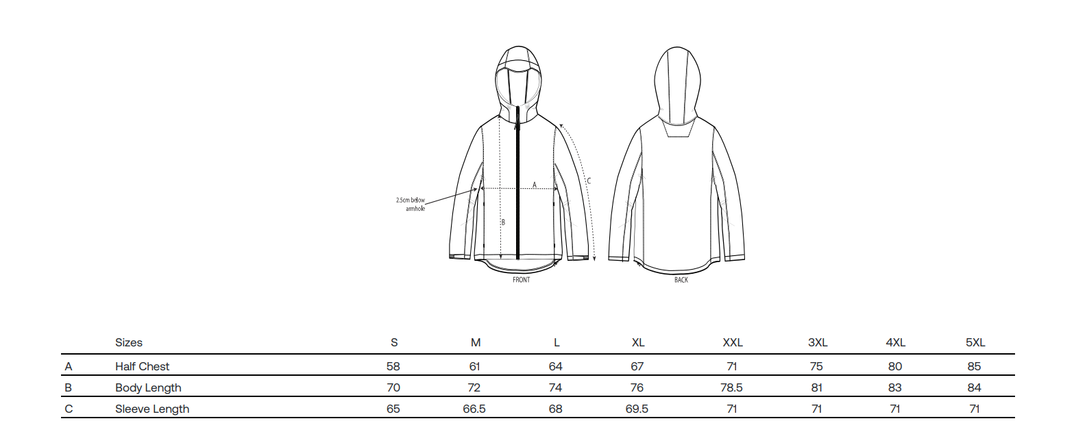 Velikosti jsou v tabulce níže, klikněte pro zvětšení.